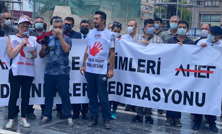 AHEF’ten yapılan açıklamada; “18 aylık pandemi döneminde onlarca sorun yaşadık. Bunları 3 yılda Sağlık Bakanlığı yetkilileri ile yüz yüze yapılan 9 ayrı toplantıda Bakan Yardımcısı, Kurum Başkanı, Başkan Yardımcısı düzeyine 6 ayrı rapor, bir miting ve yüzlerce haberle anlattık. Bakanlığın çoğu sorunu görmezden geldiğini, meslek hastalığında illiyet bağı arandığı, şehitlik payesi verilmemesi, ek ödemenin 14 ayda sadece 6 ay şartlı bir şekilde ödenmiş olması, koruyucu malzeme verilmeyişi, il müdürlüklerinin yaptığı mobingler, esnek çalışmanın verilmeyişi, yıllık izinlerin engellenmesi gibi birçok sıkıntının üstüne yeni sözleşme ödeme yönetmeliği de tuz biber oldu” dendi.