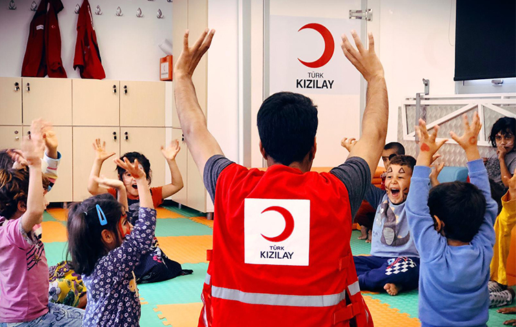 Kızılay yurt içindeki yardımları kadar gerek savaşın etkilediği coğrafyalarda gerek delegasyonlarının bulunduğu 15 farklı ülkede kamp ve yetimhanelerde yaşam mücadelesi veren çocuklara da yoldaş oluyor. Sınır ötesinde bulunan 14 yetimhanede savaşlar sonucu anne babasını kaybeden yetim çocuklara düzenli olarak gıda, gıda dışı malzeme, barınma, hijyen, eğitim malzemesi sağlayan Kızılay, kurduğu eğitim merkezlerinde temel eğitim öğretimin dışında mesleki eğitimler de veriyor. Kızılay bir taraftan çocuklara protein desteği sağlamak amacıyla haftalık rutin olarak süt ve yumurta dağıtımı gerçekleştirirken diğer taraftan psikososyal gelişimi desteklemek amacı ile oyun parkları kurulumunu da yapıyor.