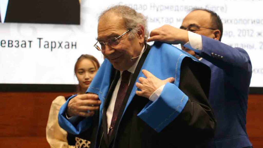 Konuşmaların ardından Prof. Dr. Nevzat Tarhan’a L.N. Gumilev Avrasya Milli Üniversitesi ‘Fahri Profesörlük’ unvanı da verildi. Tarhan’a cübbesini giydiren ve belgesini veren isim L.N. Gumilev Avrasya Milli Üniversitesi Rektörü Yerlan Sydykov oldu.