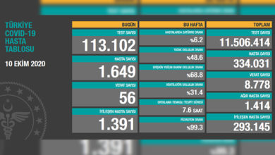 Türkiye’de son 24 saatte 56 hasta vefat etti, 1.391 hasta ise iyileşti.