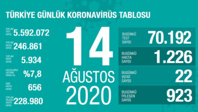 Sağlık Bakanı Fahrettin Koca, Türkiye’de koronavirüsten son 24 saatte 22 kişinin hayatını kaybettiğini, can kaybı sayısının 5 bin 934’e ulaştığını…