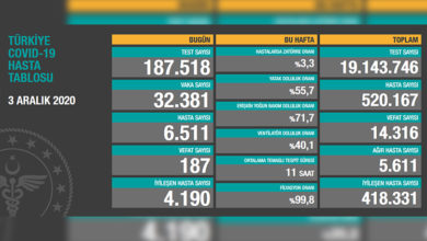 Türkiye’de son 24 saatte 187 hasta vefat etti, 4 bin 190 hasta ise iyileşti